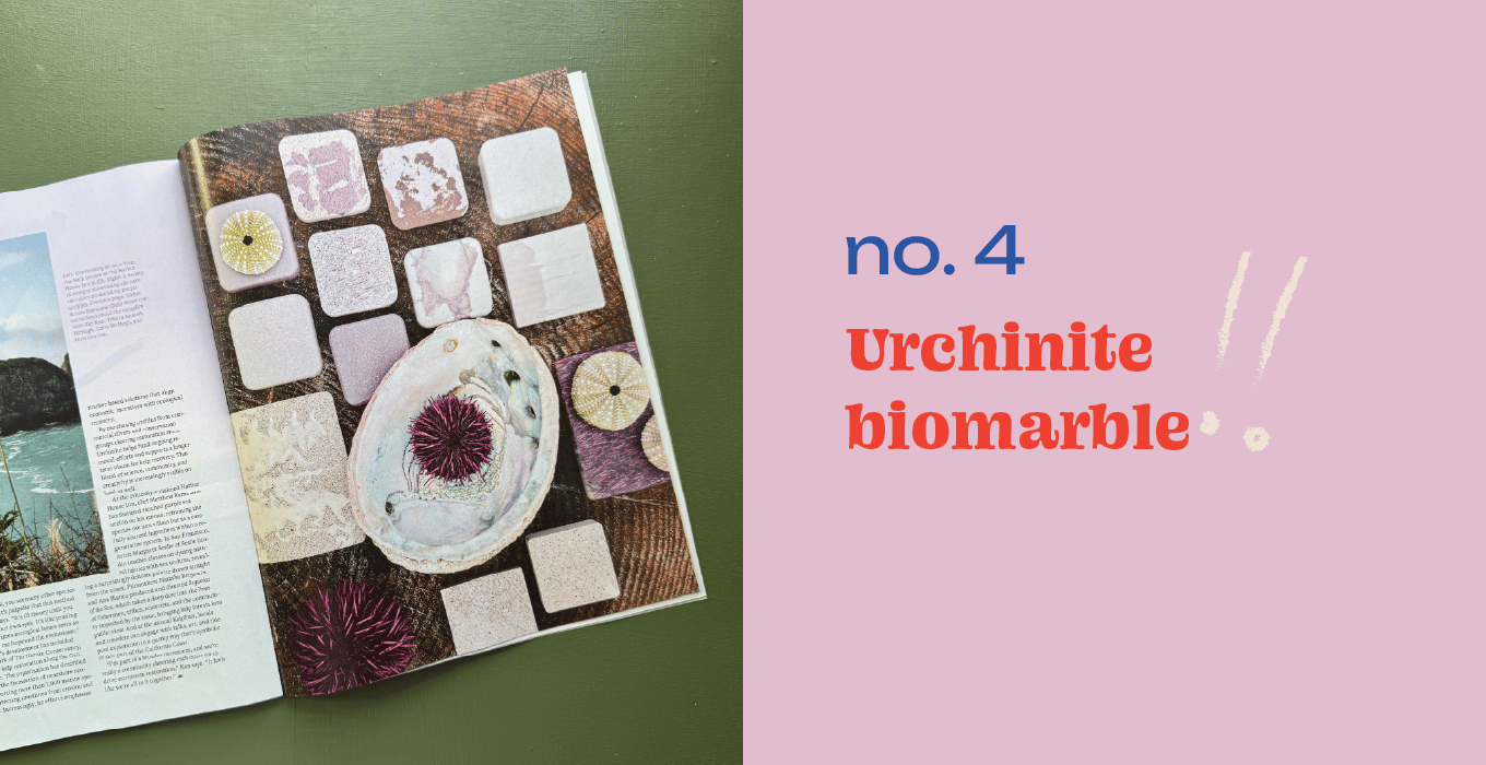 In this month’s issue of Sunset Magazine I found an article about Urchinite — a purple biomarble that is made from the mineralized shells of purple sea urchins harvested along the Mendocino Coast in Northern California. The urchins are overpopulated and have been deeply destructive to the underwater kelp forests. The hope is that by clearing some out, the coastal ecosystem can be restored. I couldn’t find the print version of the article online, but I did find this similar write up from 2025. I have no need for new countertops but I love the idea (and the color!).