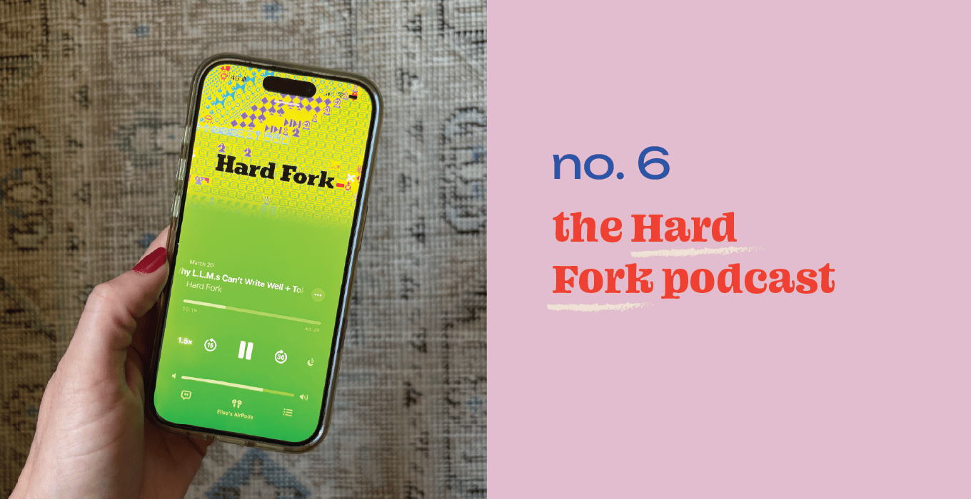 The podcast I look forward to every week is Hard Fork. It’s about tech which isn’t my typical content niche but I really like the hosts (journalists Kevin Roose and Casey Newton) and want to know more about AI which has obviously been a lot of the focus for the show in the past couple years. While the two newest episodes are free for anyone to listen to, you have to be a NY Times subscriber to go back and listen to old episodes in the app. I am sharing a gift link to a recent episode which had a super interesting middle segment (starts around 19 minutes) on AI’s current writing ability and why it may be slower to develop than anything else. I am super interested in AI’s influence on human creativity and this podcast always gives me something to think about.