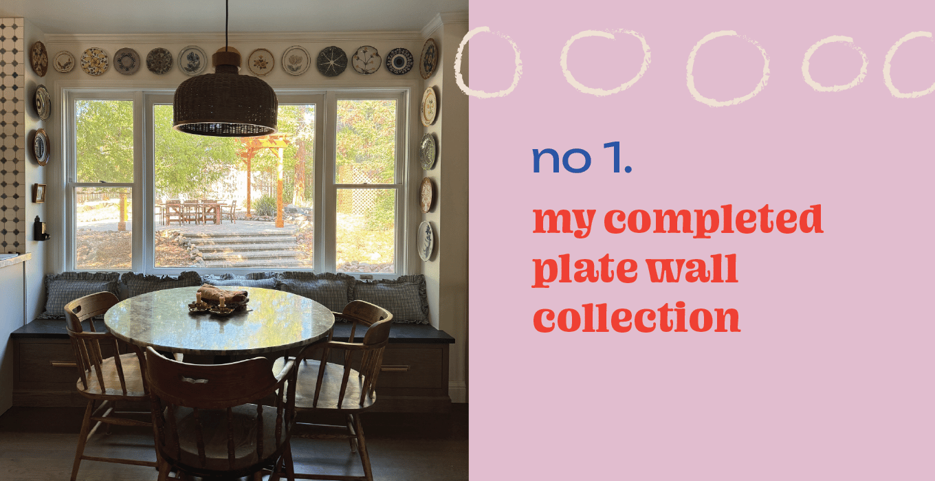I recently finished gathering plates for our kitchen plate wall and I’m excited to be done. Sharing a photo here today but also want to let you know that for three years, I let it be incomplete. As I found new (secondhand) plates in my color scheme I hung them over and next to the window. Then once I had enough to fill the space I took them all down and re-hung them in an order that made sense to my eye. Collecting takes a long time. Old me would have rushed it or bought placeholder plates. Current me enjoyed the process.