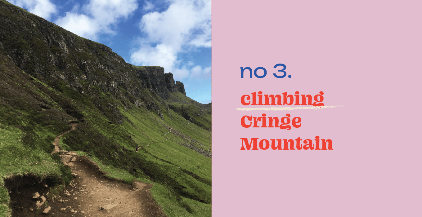 This article’s headline caught my eye in early October. I’m sharing a gift link, so you can read the article but the short story is coming into your own and trying new things is awkward! For thousands of years we did it offline! Now we have megaphones in our pockets and livestreams live forever. Content creator Erica Mallot coined the phrase “climbing cringe mountain” to describe the process of experimenting and trying on new identities on the way to finding your voice as an artist (or just as a person). In Mallot’s illustration, you have to climb cringe mountain to get to “The Land of Cool” which to me just means “The Place Where You Feel Confident in Who You Are.” I spent much of September looking back at blog posts from 17 years ago and wow was I doing some cringe mountain climbing. I am so glad I kept on.